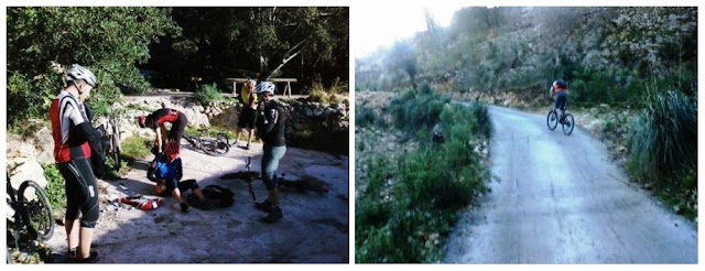 Hemos iniciado la subida a Valldemossa por carretera y los primeros en llegar han sido Alex y Pep, luego hemos ido llegando Sese, yo, y los demás uno tras otro.